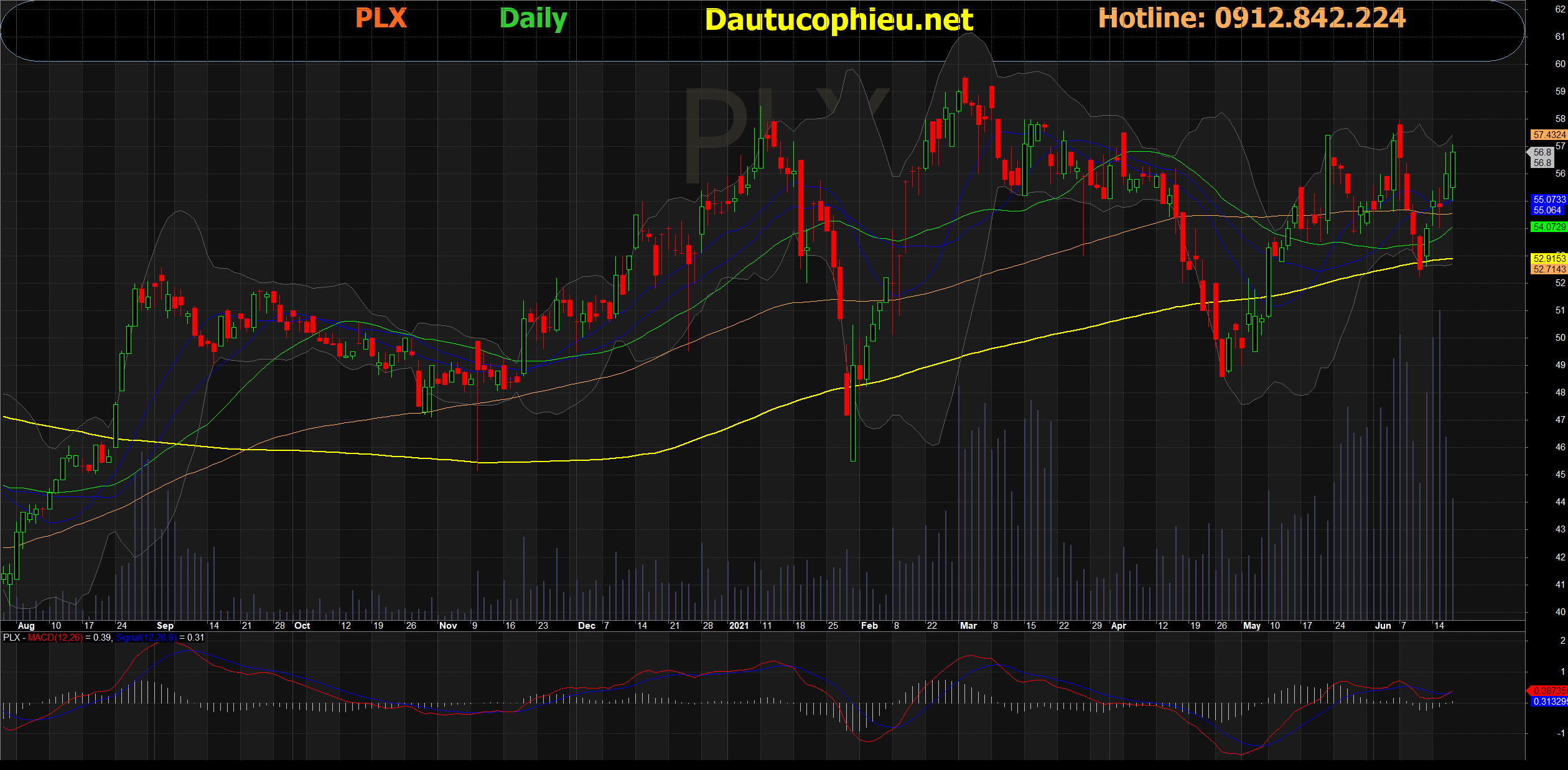 - Chúng tôi sử dụng P/E và P/B lịch sử để định giá Cổ phiếu PLX, theo đó mức giá hợp lý của PLX trong 12 tháng là 64.800 đồng/cổ phiếu (cp), cao hơn 15,7% so với giá đóng cửa ngày 16/06/2021. Chúng tôi khuyến nghị Tăng tỷ trọng với CP PLX.