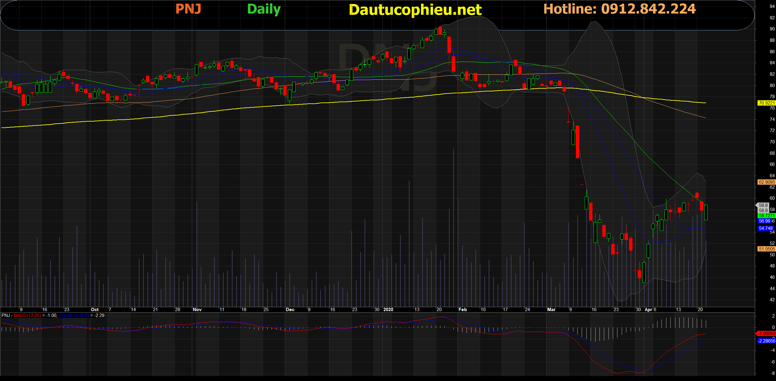Đồ thị cổ phiếu PNJ phiên giao dịch ngày 22/04/2020. Nguồn: AmiBroker.