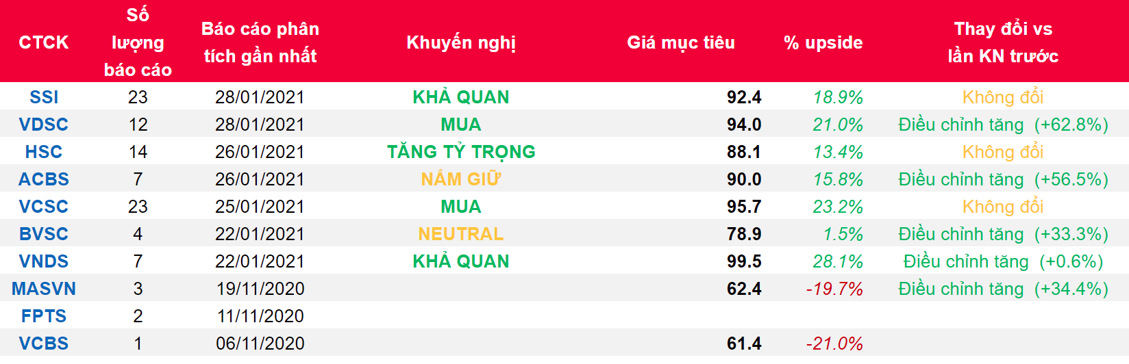 - Cho năm 2021, chúng tôi dự báo doanh thu và LNST lần lượt đạt 19.276 tỷ đồng (+ 10% YoY) và 1.278 tỷ đồng (+ 20% YoY), tương ứng với EPS năm 2021 là 5.615 đồng. Cổ phiếu PNJ đang giao dịch ở mức P/E 2021F 13,8x. Chúng tôi giữ quan điểm tích cực về triển vọng dài hạn của PNJ dựa trên vị thế dẫn đầu thị trường và sức mua tiềm năng từ tầng lớp trung lưu đang tăng nhanh, trong khi chất xúc tác ngắn hạn là sự phục hồi của lợi nhuận ròng từ mức thấp vào năm 2020 hưởng lợi từ chi tiêu các sản phẩm không thiết yếu phục hồi. Chúng tôi lặp lại khuyến nghị MUA đối với PNJ, với giá mục tiêu trong 1 năm là 94.000 đồng, tương ứng lợi nhuận kỳ vọng là 23% bao gồm cổ tức tiền mặt 1,800 đồng.