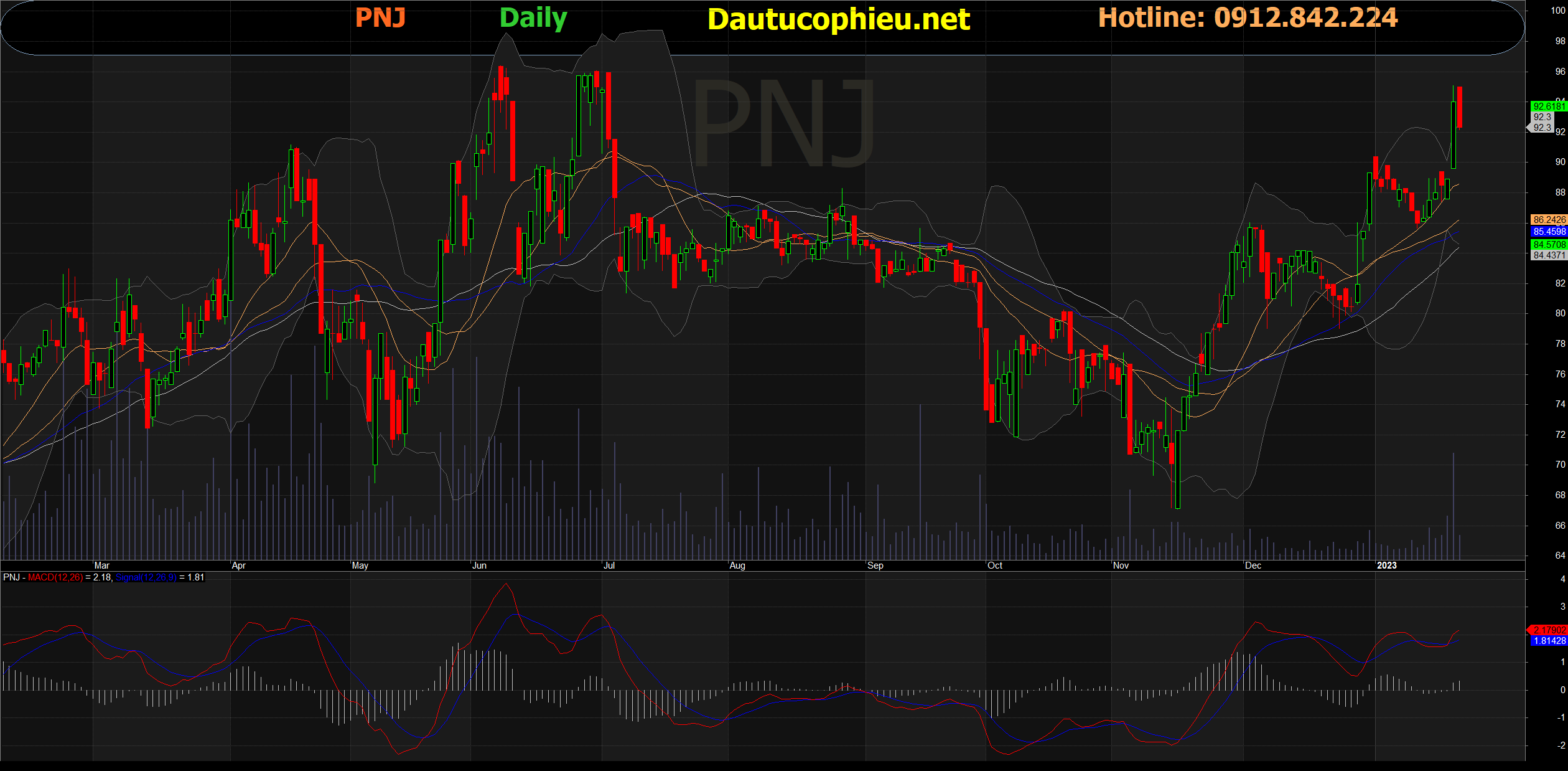 Đồ thị cổ phiếu PNJ phiên giao dịch ngày 30/01/2023. Nguồn: AmiBroker