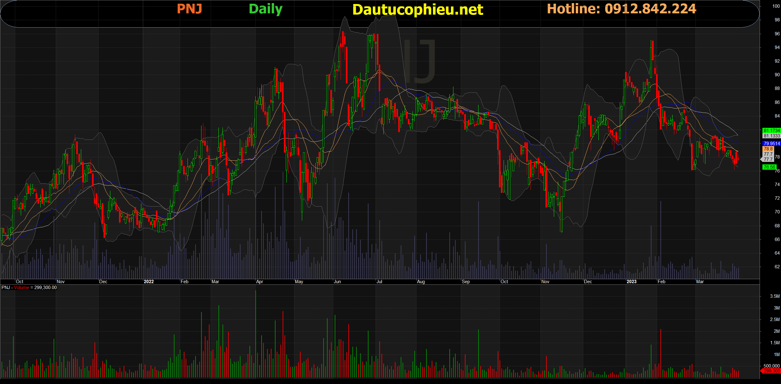 Đồ thị cổ phiếu PNJ phiên giao dịch ngày 31/03/2023. Nguồn: AmiBroker