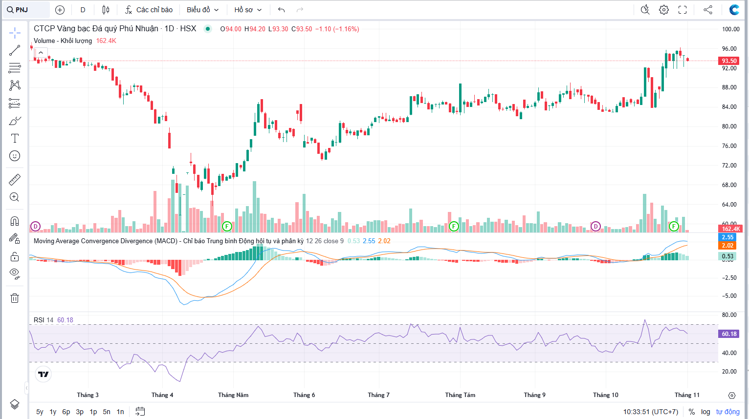 Đồ thị cổ phiếu PNJ phiên giao dịch ngày 03/11/2025