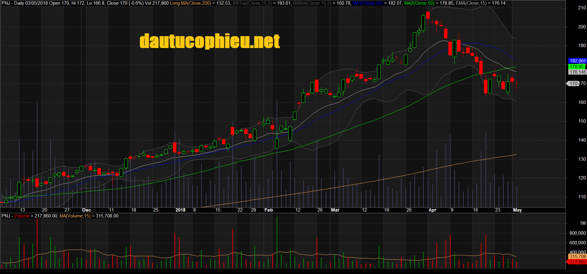 Đồ thị cổ phiếu PNJ phiên giao dịch ngày 03/05/2018. Nguồn: AmiBroker