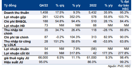 Trong năm 2022, doanh thu thuần đạt 33.876 tỷ đồng, tăng trưởng 73,3%, và lợi nhuận thuần đạt 1.807 tỷ đồng, tăng trưởng 75,6%, sát với dự báo của chúng tôi là 1.799 tỷ đồng.
