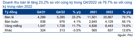 Bảng 1: KQKD Q4/2022 và năm 2022, PNJ