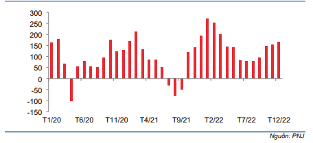 Doanh thu bán lẻ vẫn khả quan trong Q4/2022, tăng 23,2% so với cùng kỳ, nhờ nhu cầu trang sức ổn định. Trong kỳ, Công ty mở mới 12 cửa hàng vàng và nâng cấp 12 cửa hàng cũ. Doanh thu vàng miếng tăng 11,7% so với cùng kỳ trong khi doanh thu bán buôn tăng 4,1% so với cùng kỳ.