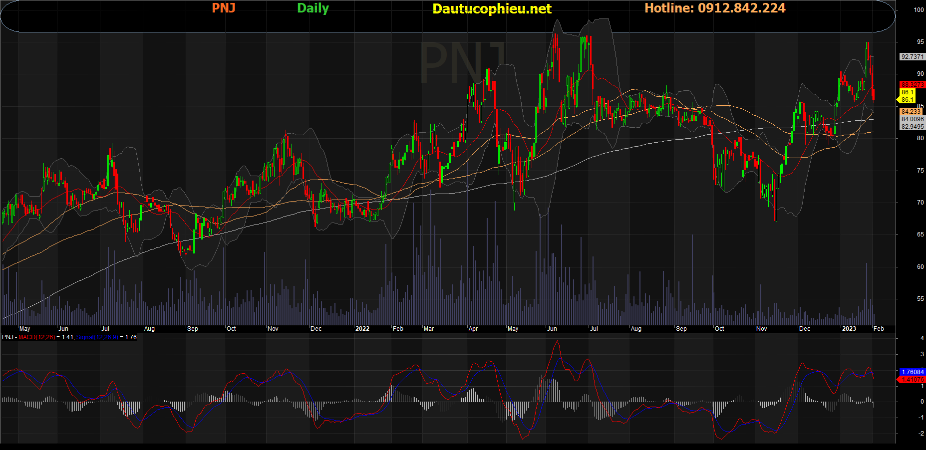 Đồ thị cổ phiếu PNJ phiên giao dịch ngày 02/02/2023. Nguồn: AmiBroker