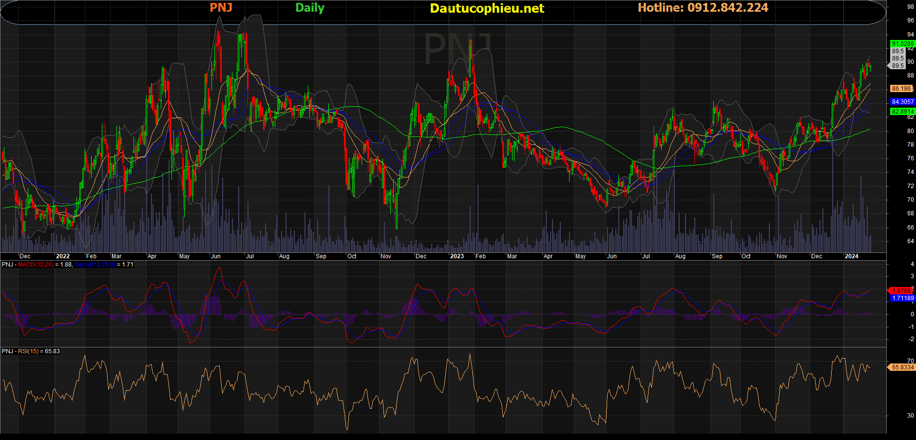 Đồ thị cổ phiếu PNJ phiên giao dịch ngày 25/01/2024. Nguồn: AmiBroker