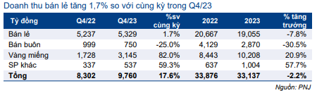 Bảng 1: KQKD Q4/2023 và cả năm 2023, PNJ