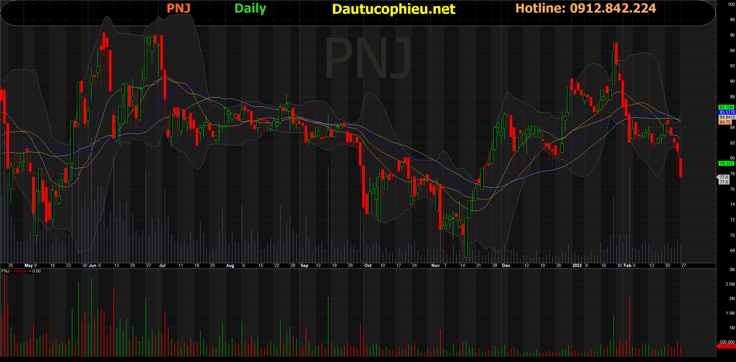 Đồ thị cổ phiếu PNJ phiên giao dịch ngày 27/02/2023. Nguồn: AmiBroker