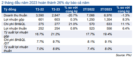 Bảng 1: KQKD T2/2023 và 2 tháng đầu năm 2023, PNJ