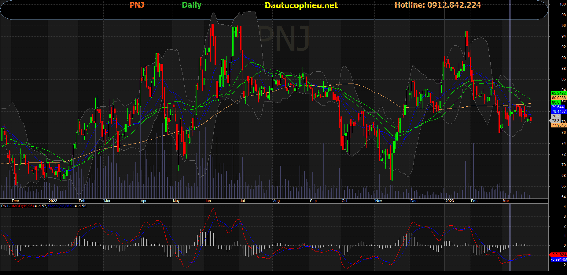 Đồ thị cổ phiếu PNJ phiên giao dịch ngày 27/03/2023. Nguồn: AmiBroker