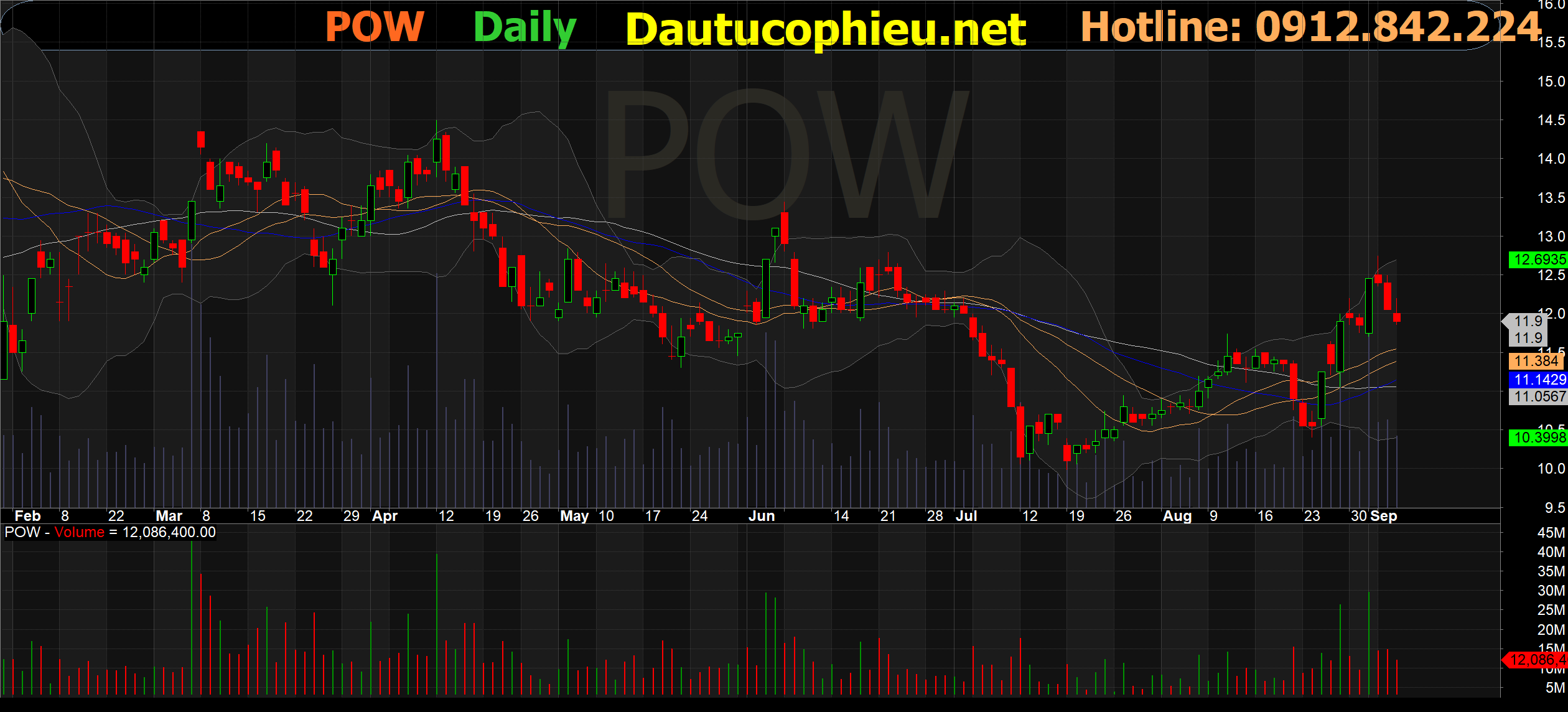 Đồ thị cổ phiếu POW phiên giao dịch ngày 08/09/2021. Nguồn: AmiBroker