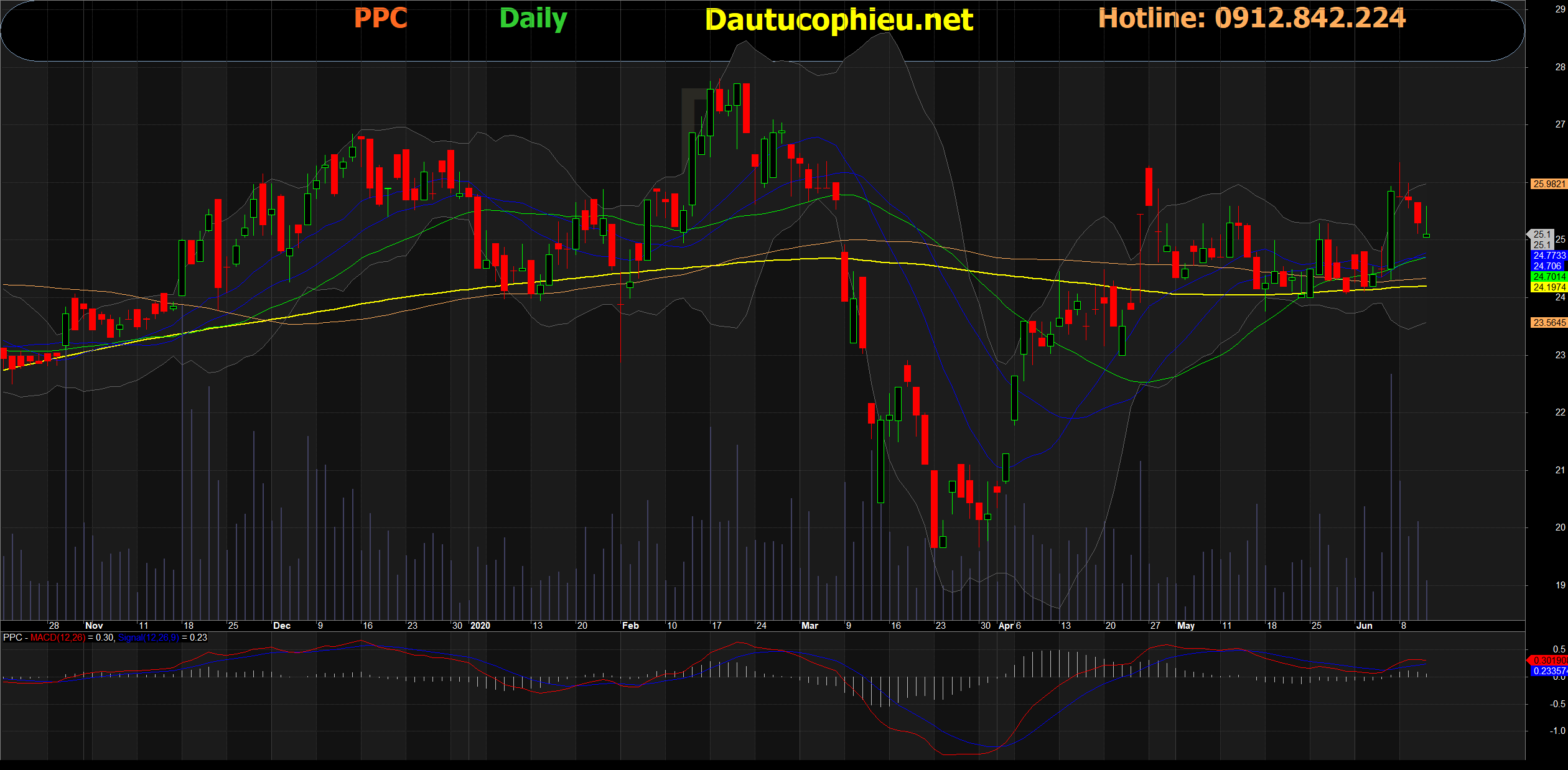 Đồ thị cổ phiếu PPC phiên giao dịch ngày 11/06/2020. Nguồn: AmiBroker