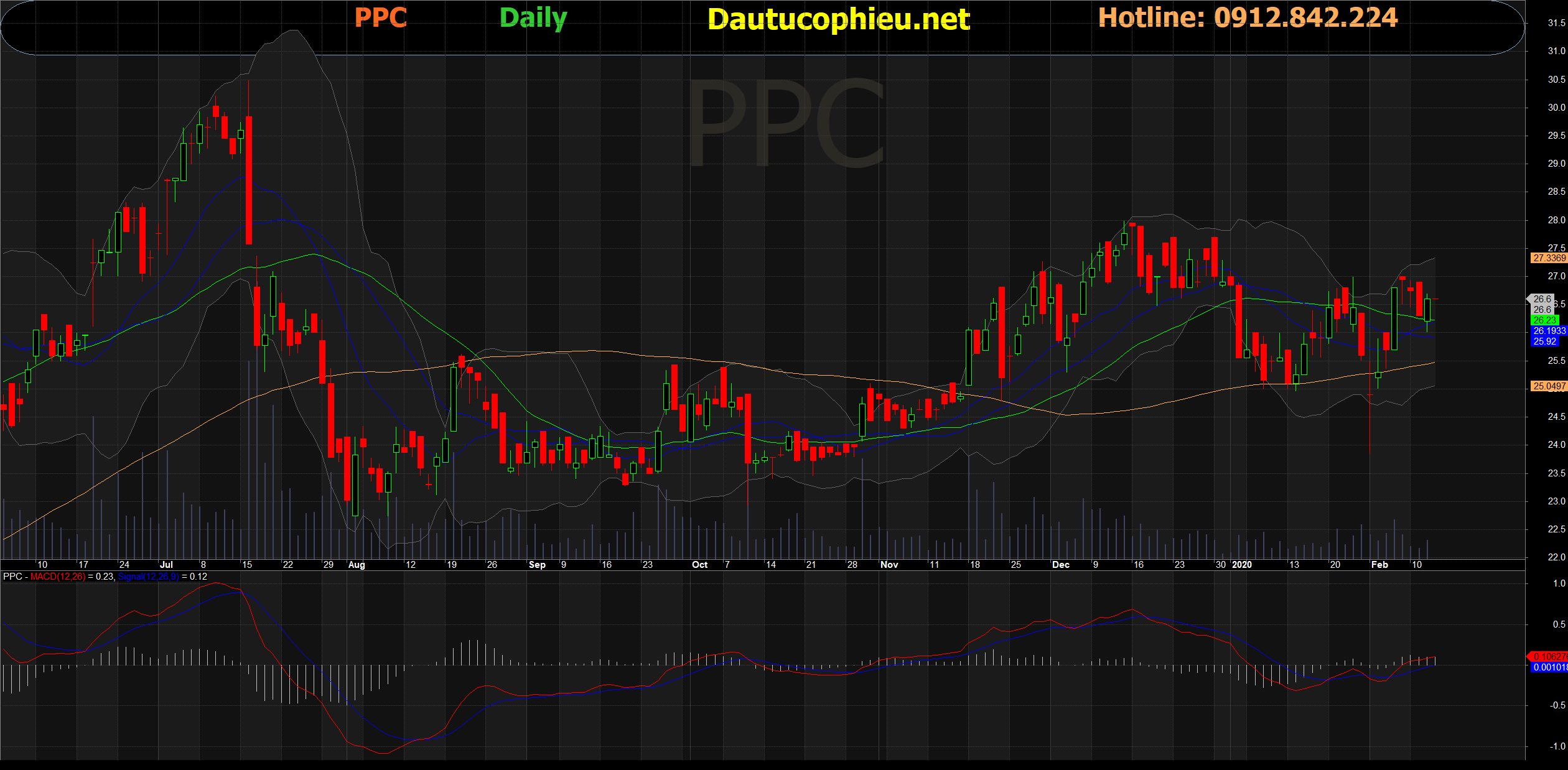 Đồ thị cổ phiếu PPC phiên giao dịch ngày 12/02/2020. Nguồn: AmiBroker