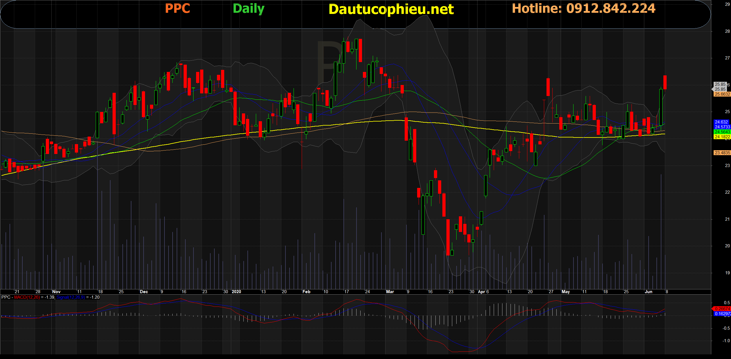 Đồ thị cổ phiếu PPC phiên giao dịch ngày 05/06/2020. Nguồn: AmiBroker