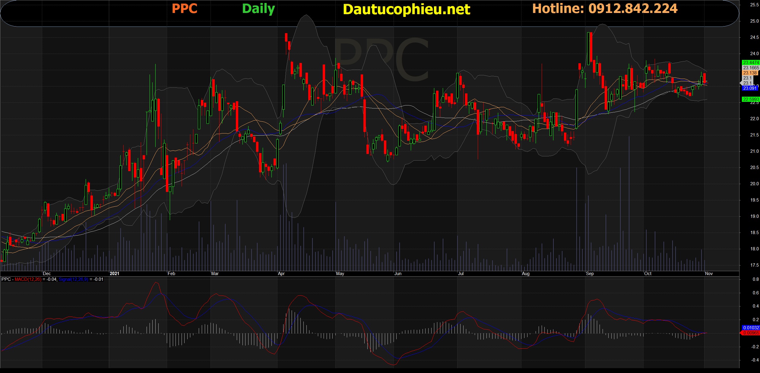 Đồ thị cổ phiếu PPC phiên giao dịch ngày 02/11/2021. Nguồn: AmiBroker