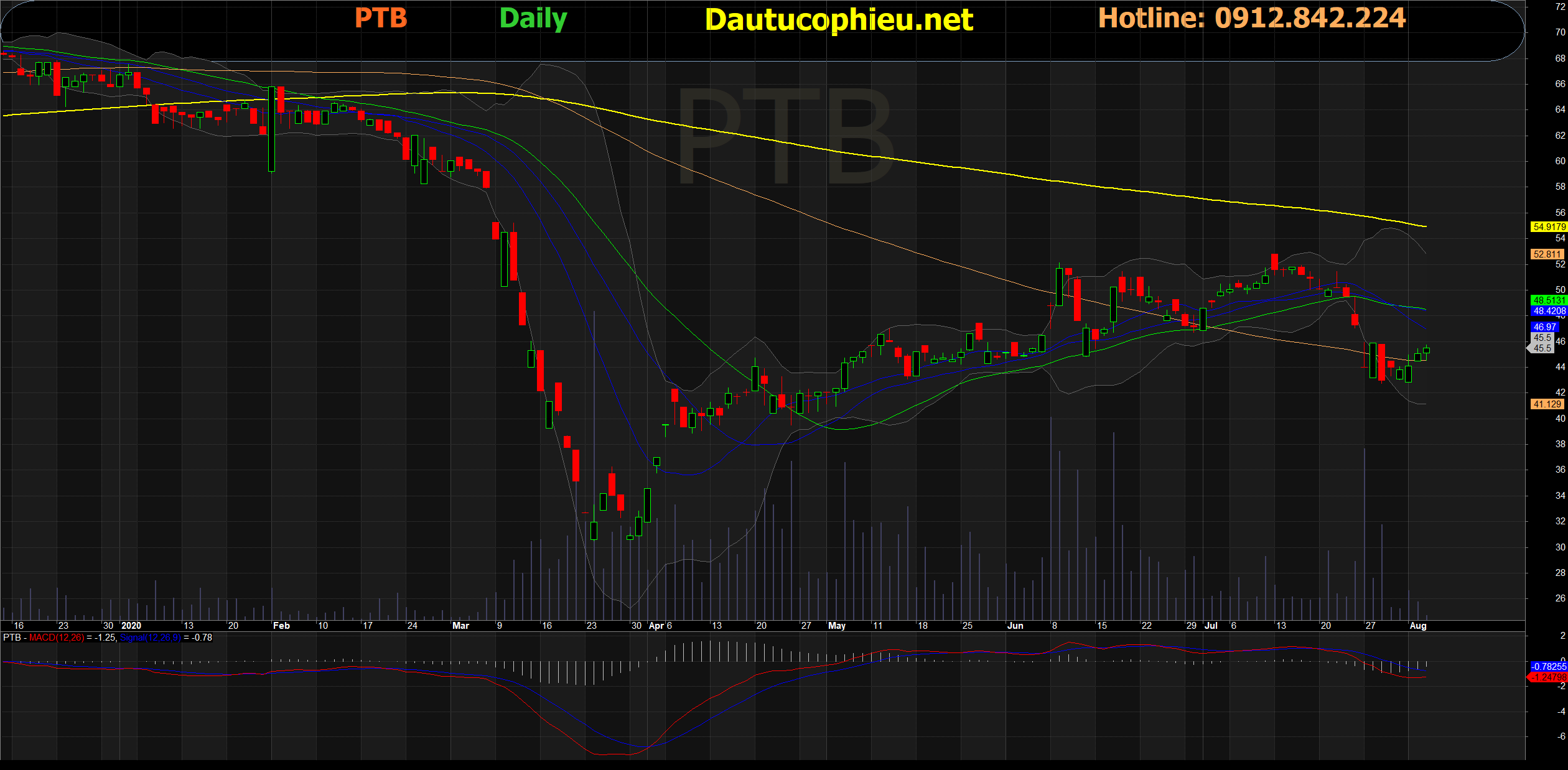 Đồ thị cổ phiếu PTB phiên giao dịch ngày 05/08/2020. Nguồn: AmiBroker