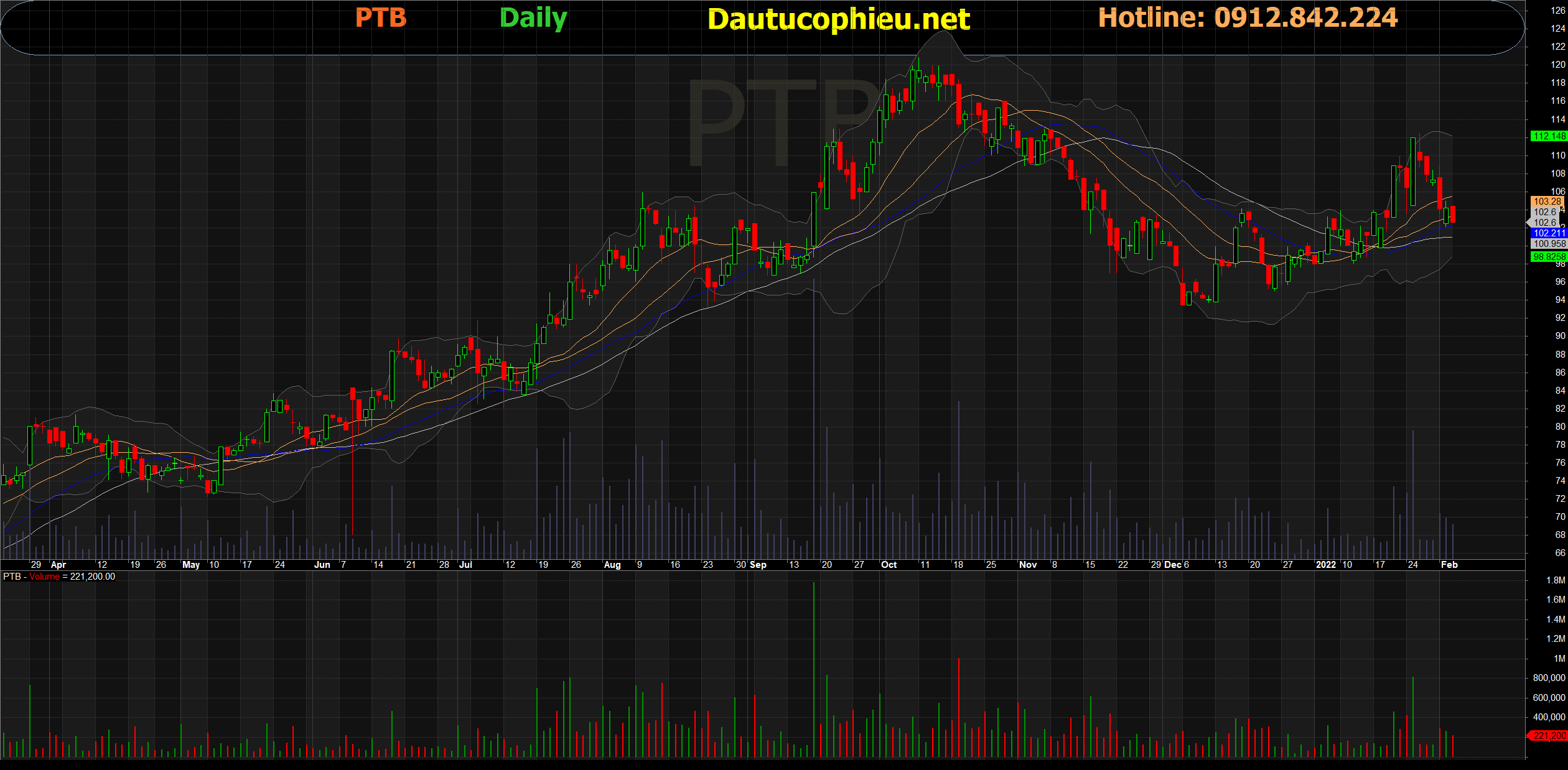 Đồ thị cổ phiếu PTB phiên giao dịch ngày 09/02/2022. Nguồn: AmiBroker