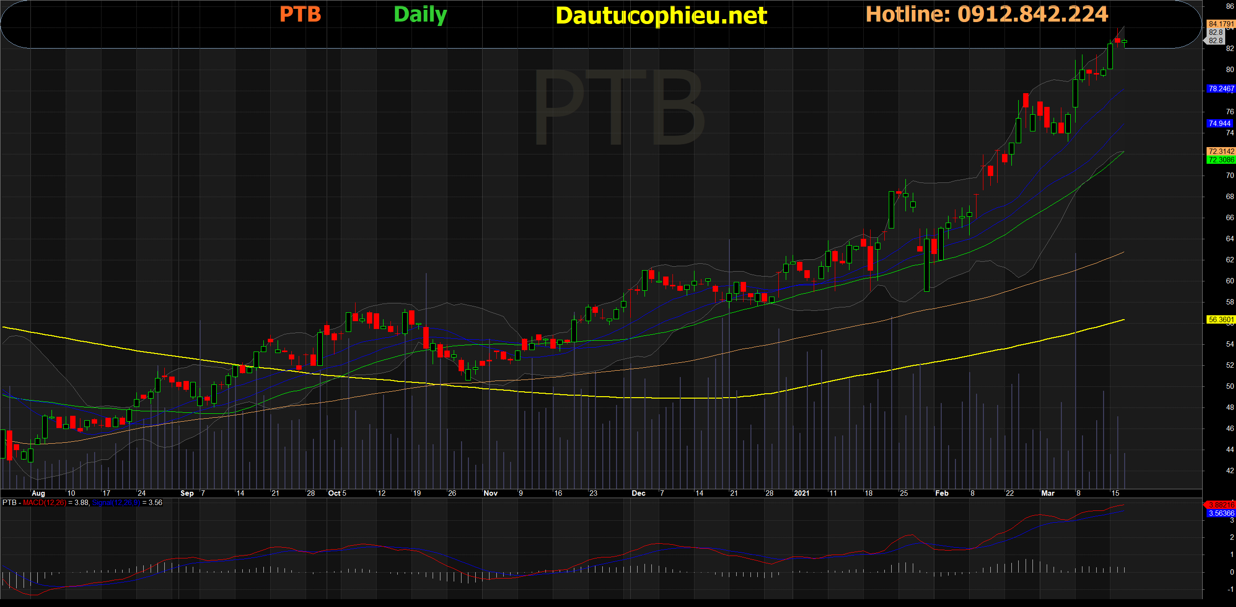Đồ thị cổ phiếu PTB phiên giao dịch ngày 17/03/2021. Nguồn: AmiBroker