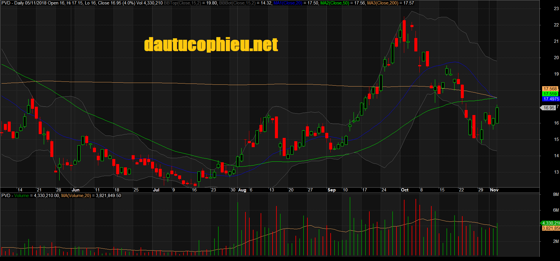 Đồ thị cổ phiếu PVD phiên giao dịch ngày 05/11/2018. Nguồn: AmiBroker