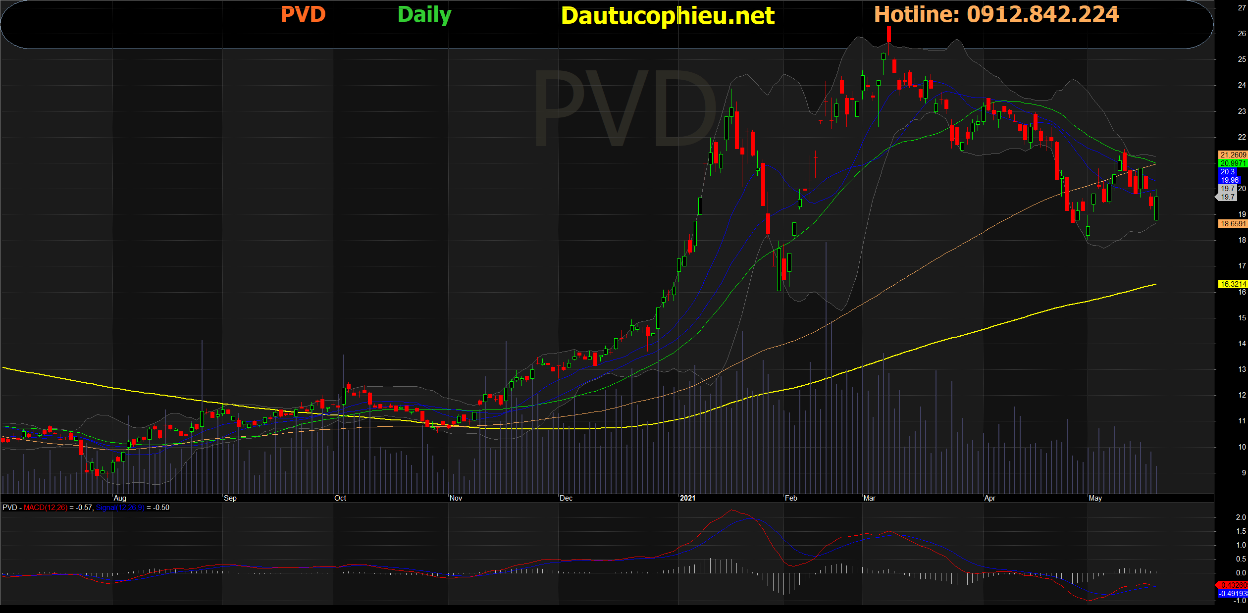 Đồ thị cổ phiếu PVD phiên giao dịch ngày 21/05/2021. Nguồn: AmiBroker