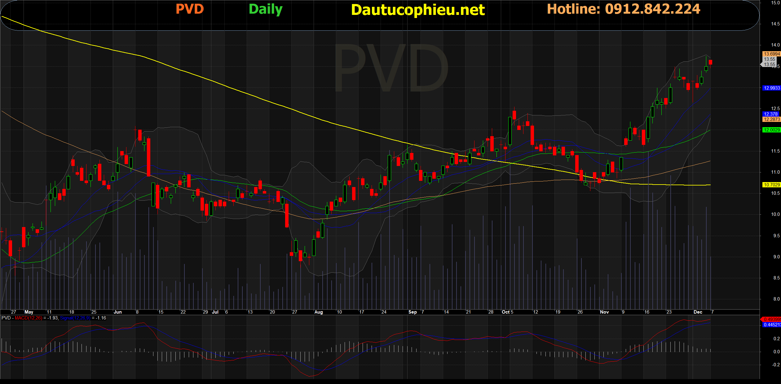 Đồ thị cổ phiếu PVD phiên giao dịch ngày 07/12/2020. Nguồn: AmiBroker