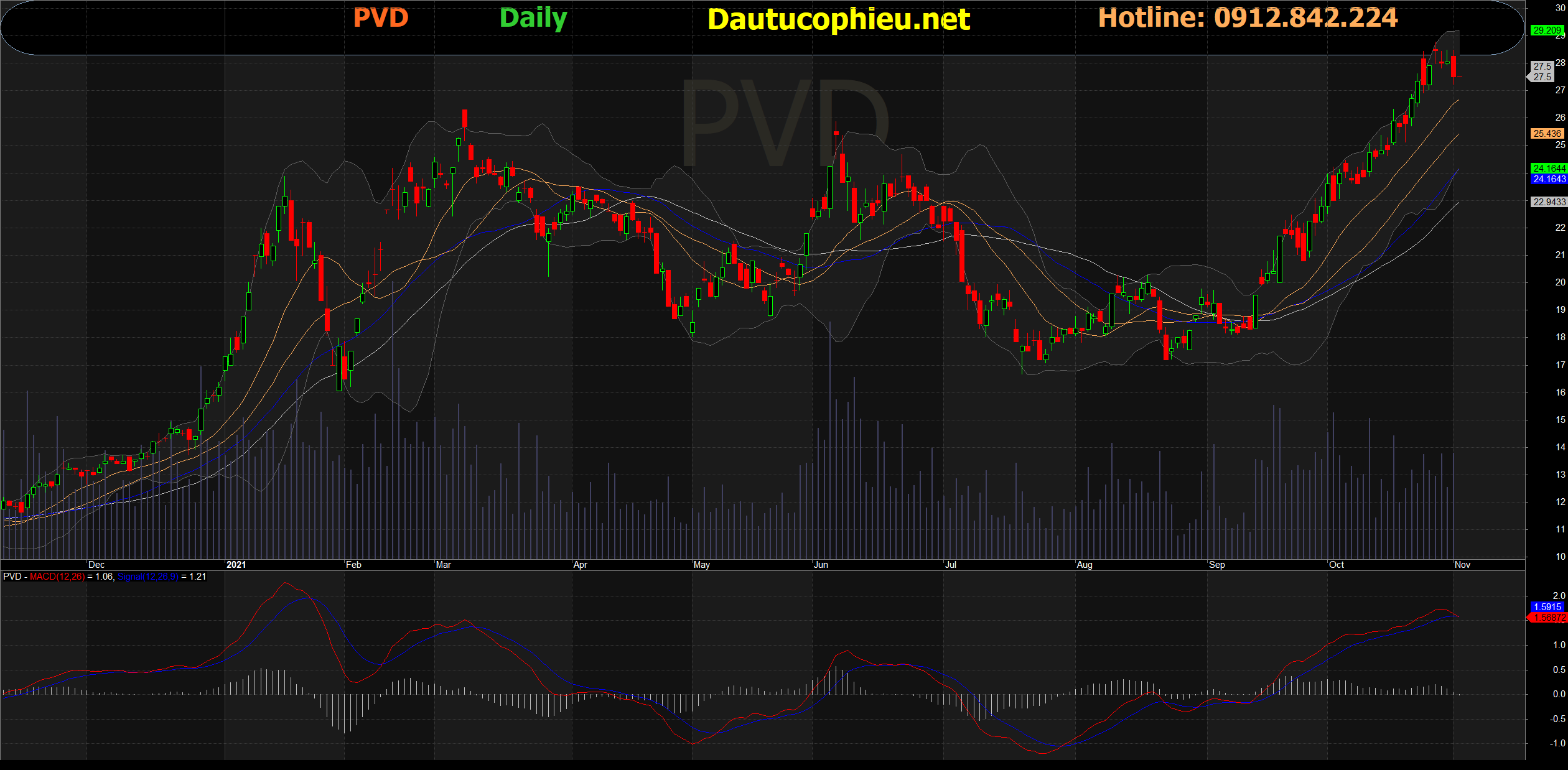 Đồ thị cổ phiếu PVD phiên giao dịch ngày 02/11/2021. Nguồn: AmiBroker