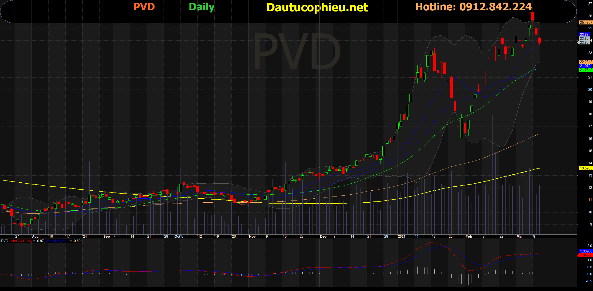 Đồ thị cổ phiếu PVD phiên giao dịch ngày 10/03/2021. Nguồn: AmiBroker