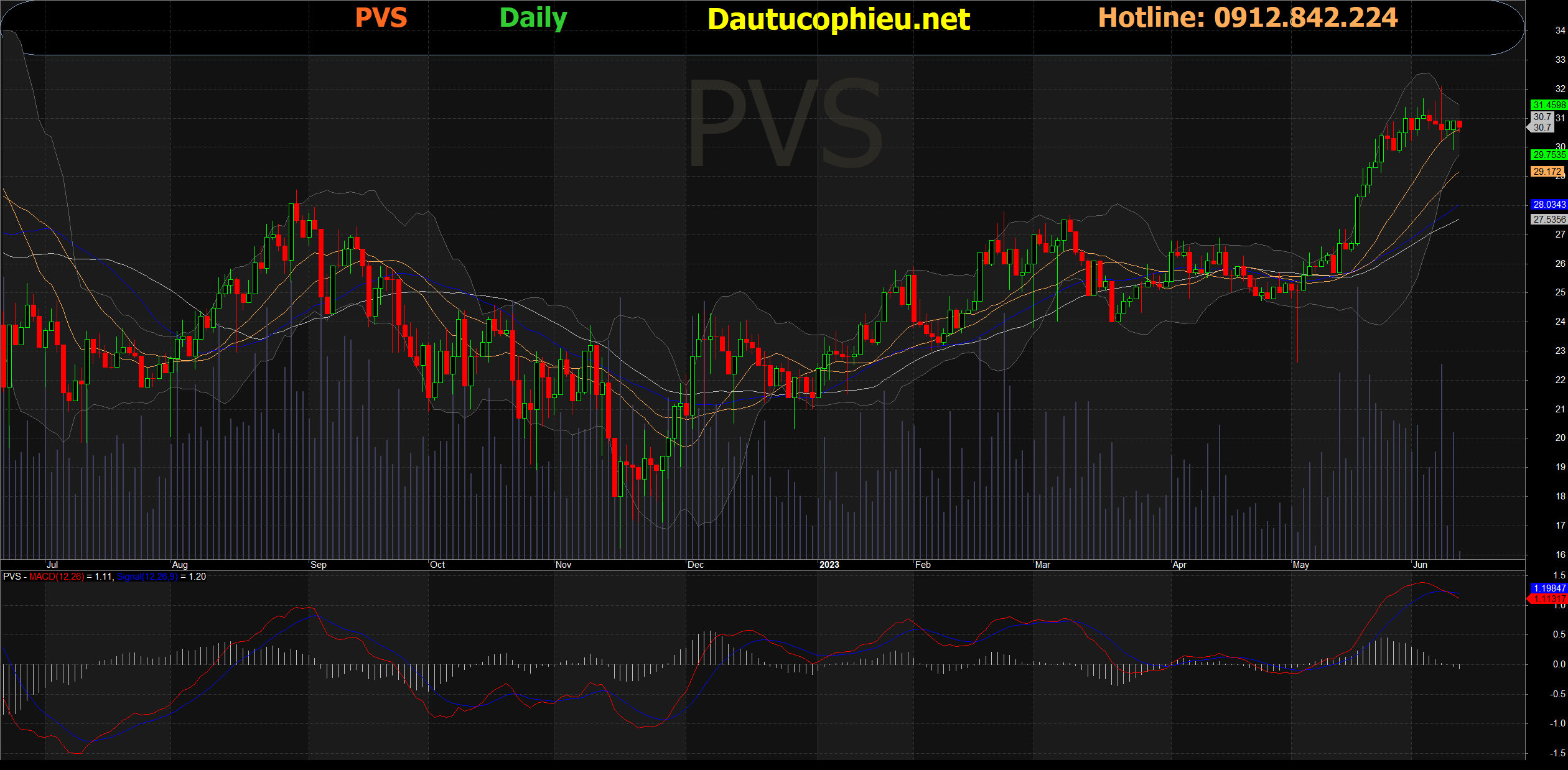 Đồ thị cổ phiếu PVS phiên giao dịch ngày 14/06/2023. Nguồn: AmiBroker