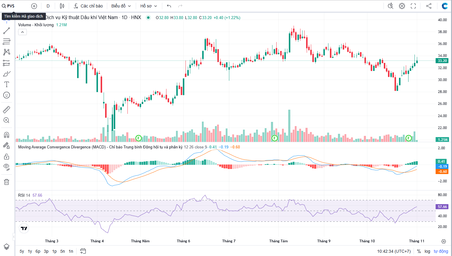 Đồ thị cổ phiếu PVS phiên giao dịch ngày 03/11/2025