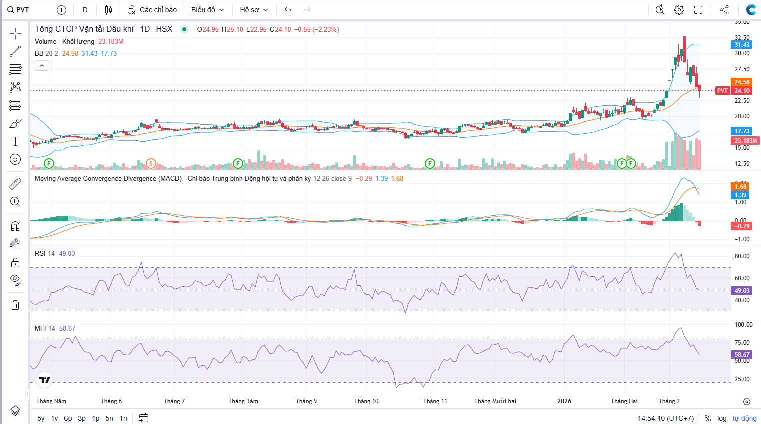 Đồ thị cổ phiếu PVT phiên giao dịch ngày 16/03/2026