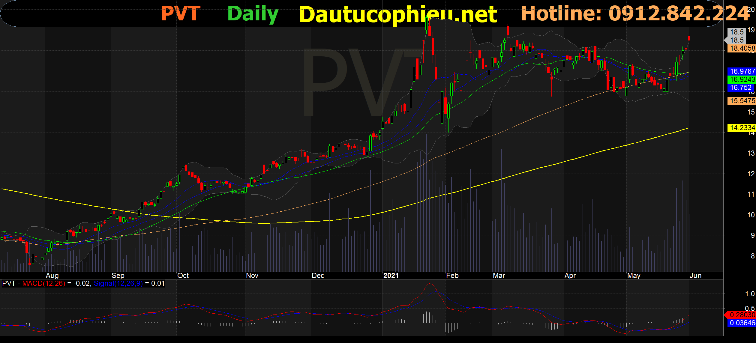 Đồ thị cổ phiếu PVT phiên giao dịch ngày 01/06/2021. Nguồn: AmiBroker