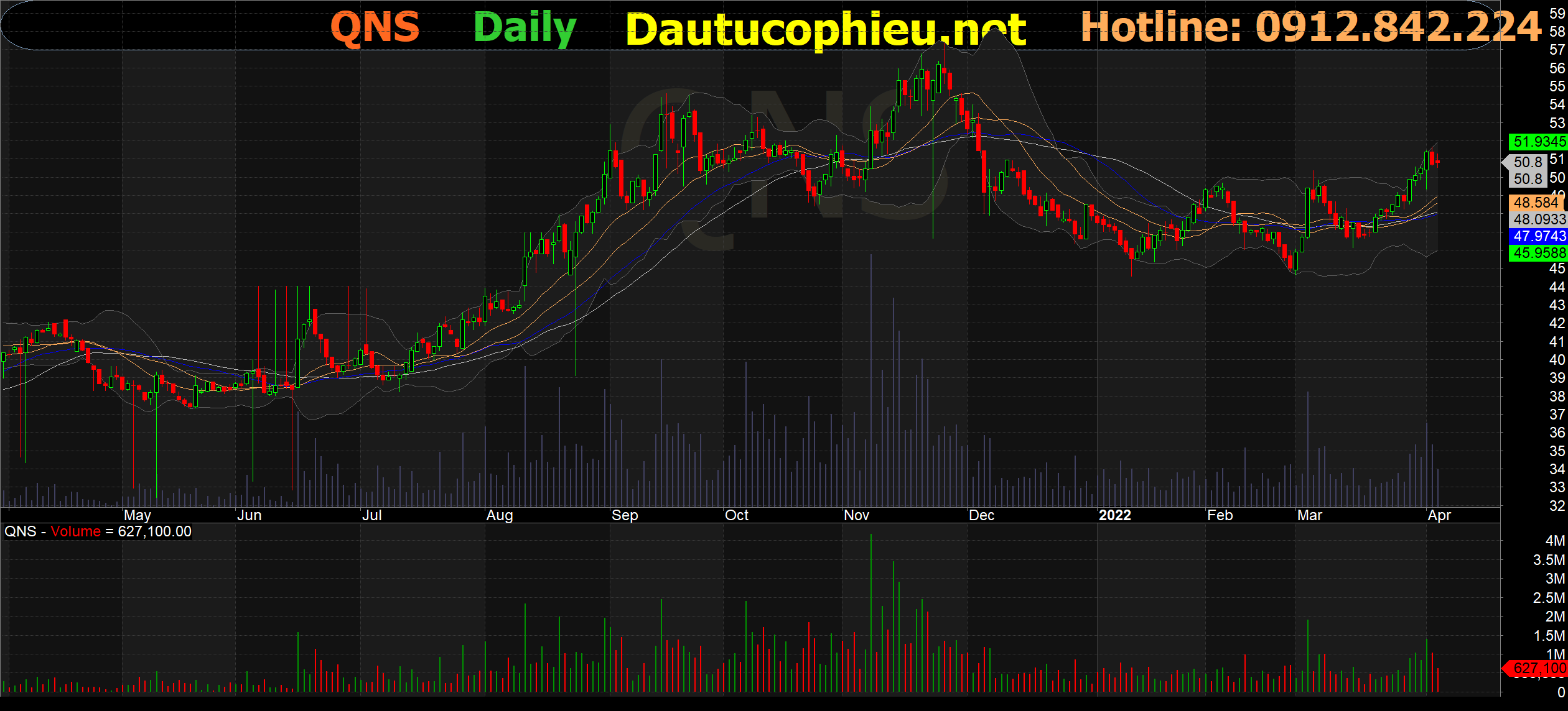 Đồ thị cổ phiếu QNS phiên giao dịch ngày 05/04/2022. Nguồn: AmiBroker