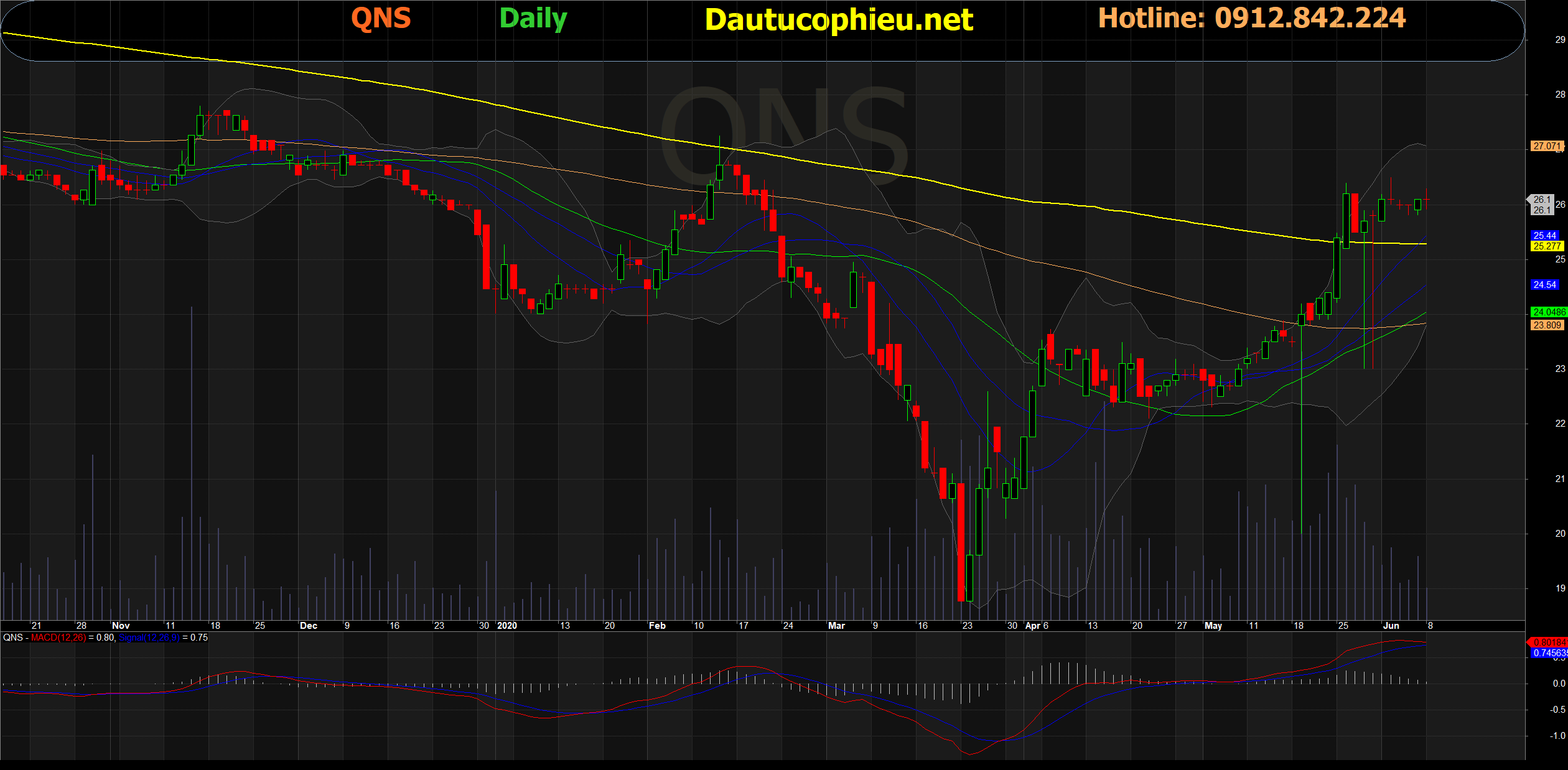 Đồ thị cổ phiếu QNS phiên giao dịch ngày 05/06/2020. Nguồn: AmiBroker