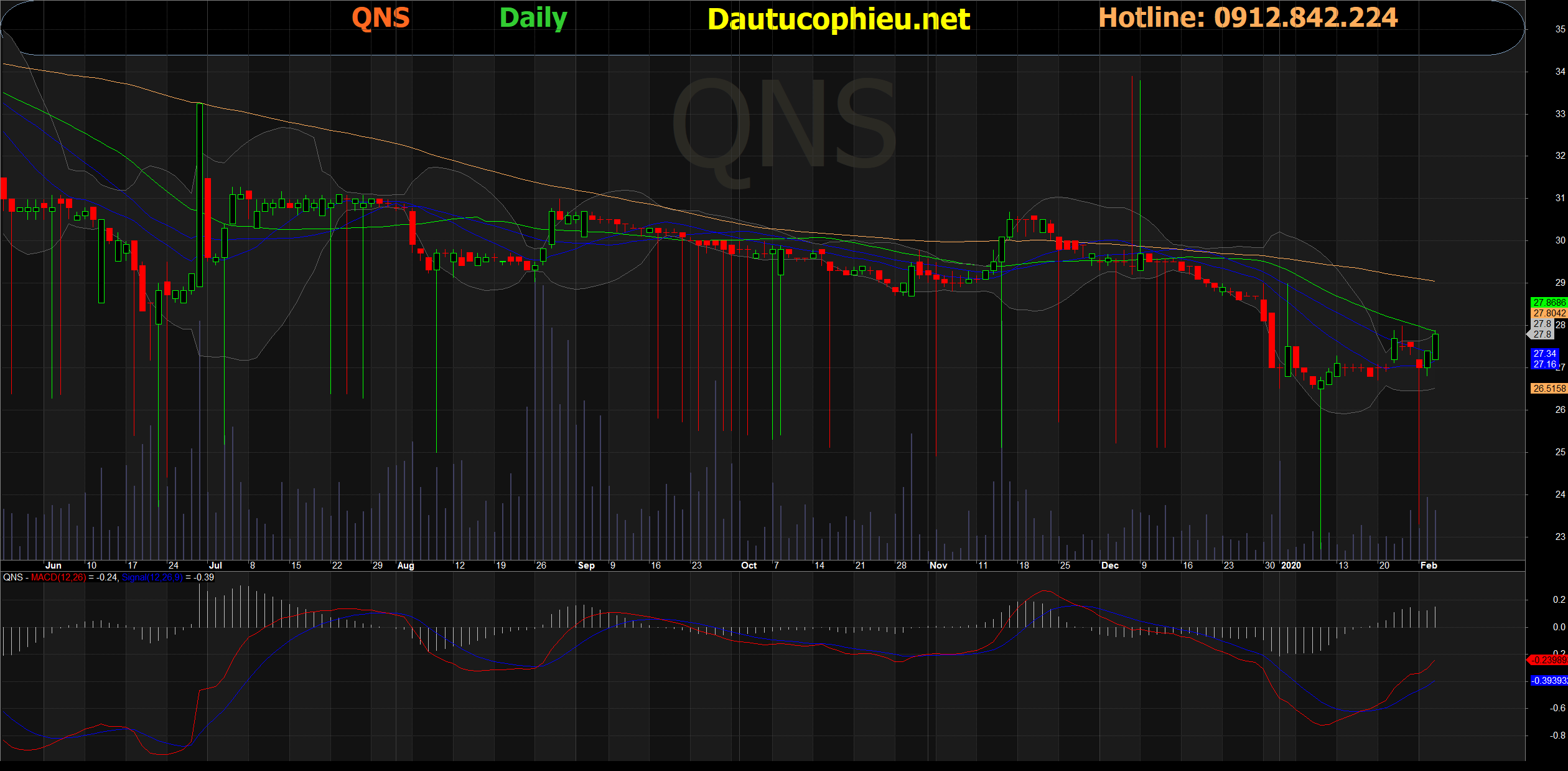 Đồ thị cổ phiếu QNS phiên giao dịch ngày 05.02.2020. Nguồn: AmiBroker.