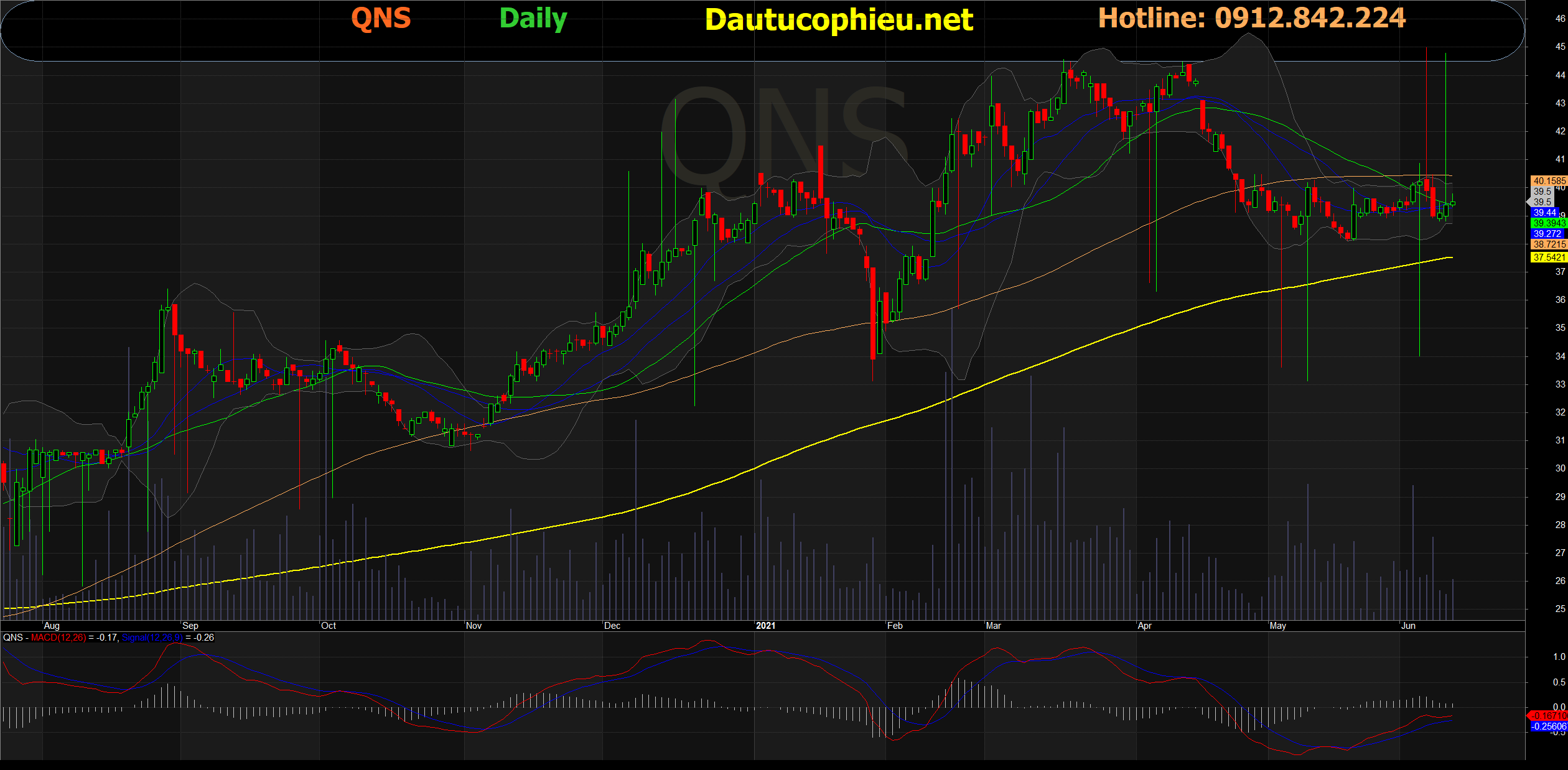 Đồ thị cổ phiếu QNS phiên giao dịch ngày 11/06/2021. Nguồn: AmiBroker