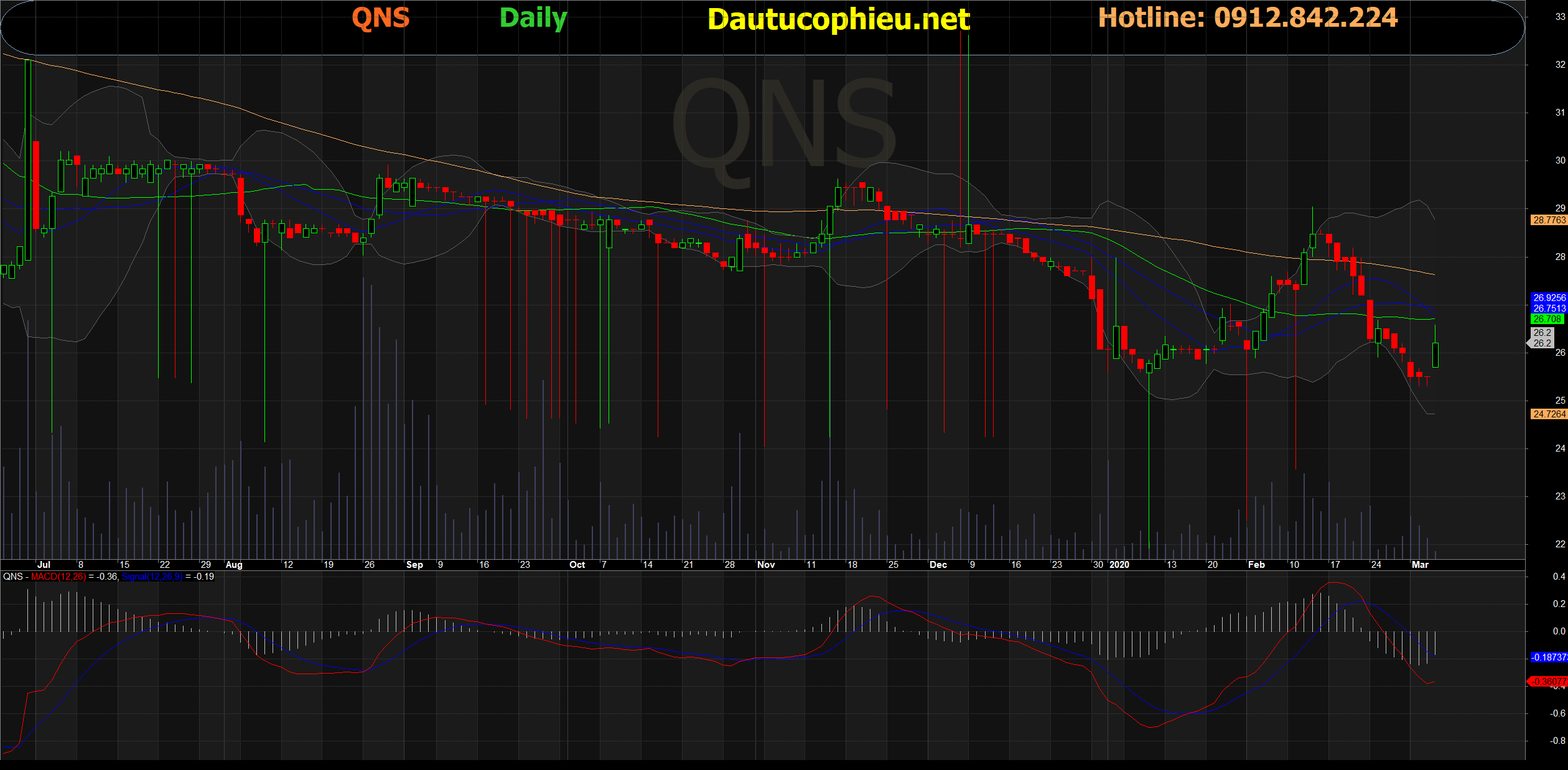 Đồ thị cổ phiếu QNS phiên giao dịch ngày 05/03/2020. Nguồn: AmiBroker.