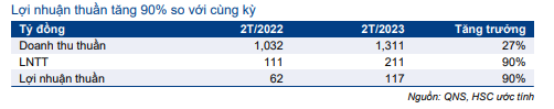 Bảng 1: KQKD 2 tháng đầu năm 2023, QNS