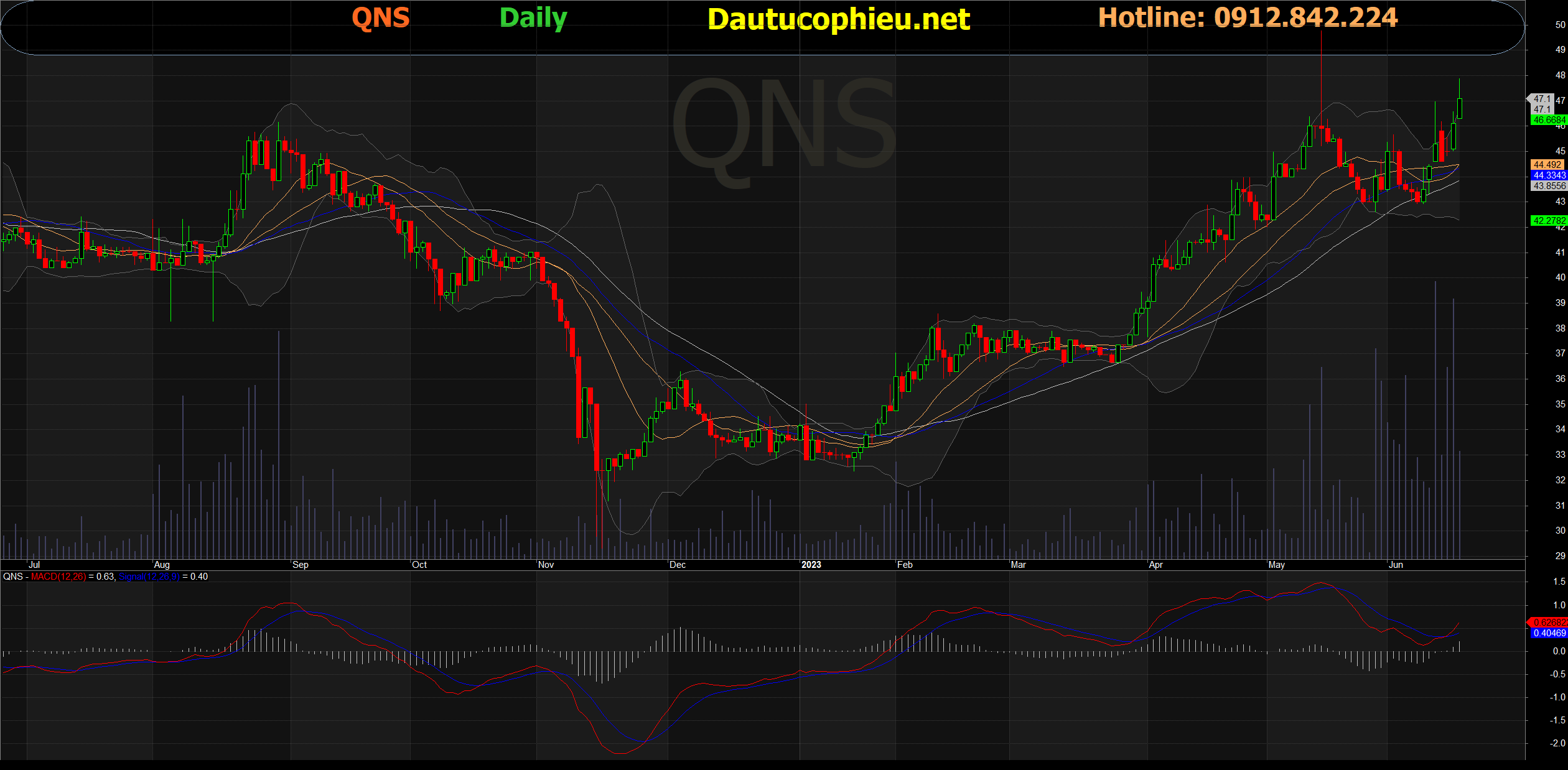Đồ thị cổ phiếu QNS phiên giao dịch ngày 19/06/2023. Nguồn: AmiBroker