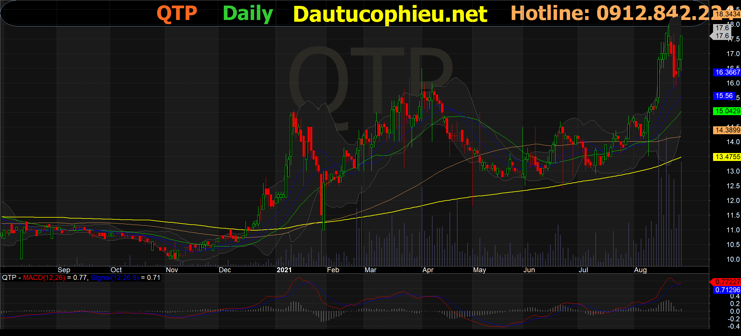 Đồ thị cổ phiếu QTP phiên giao dịch ngày 27/08/2021. Nguồn: AmiBroker