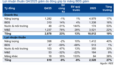 Bảng 1: KQKD Q4 và cả năm 2025, REE