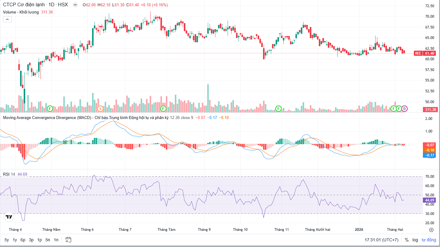 Đồ thị cổ phiếu REE phiên giao dịch ngày 09/02/2026
