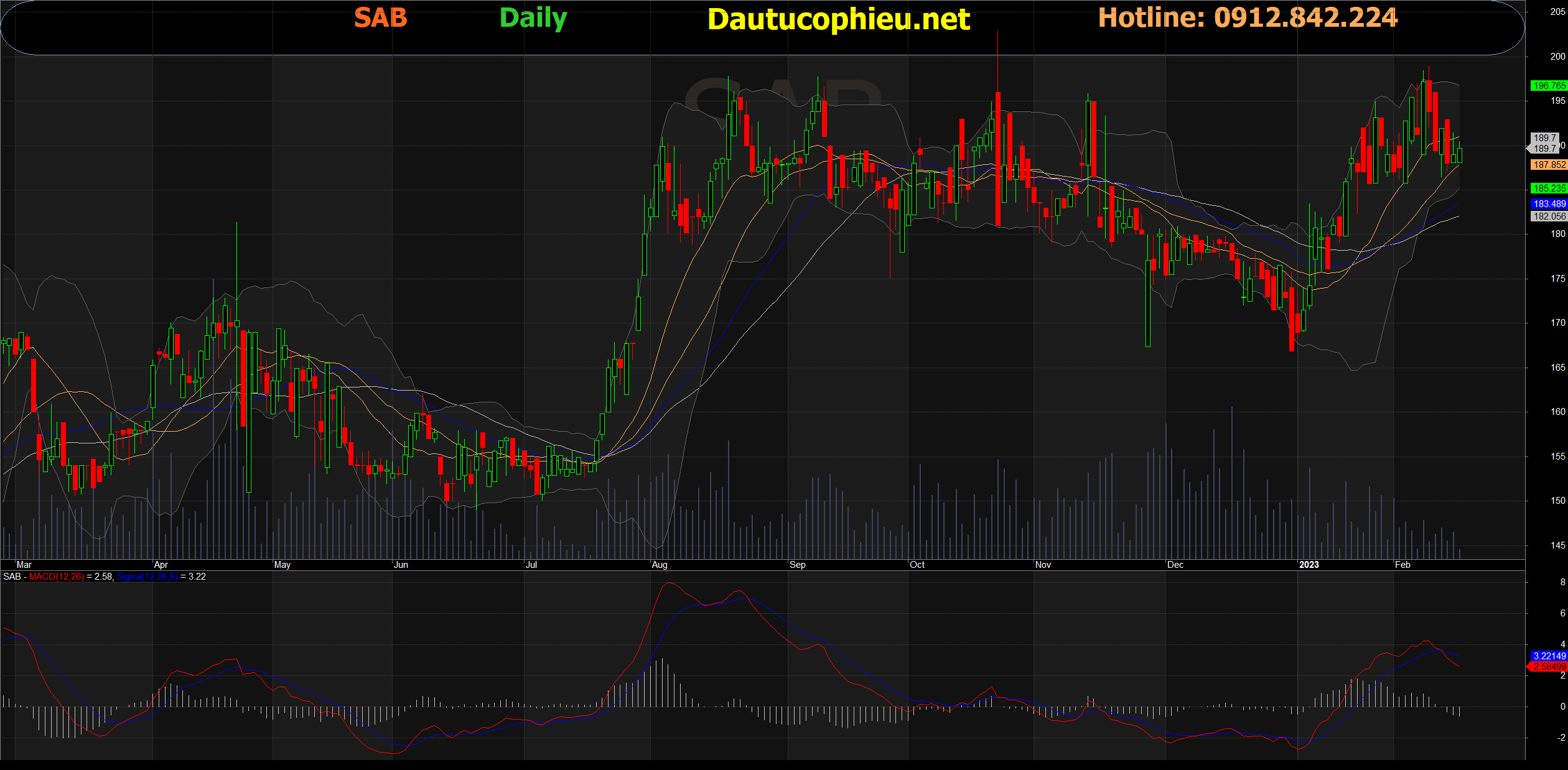 Đồ thị cổ phiếu SAB phiên giao dịch ngày 16/02/2023. Nguồn: AmiBroker
