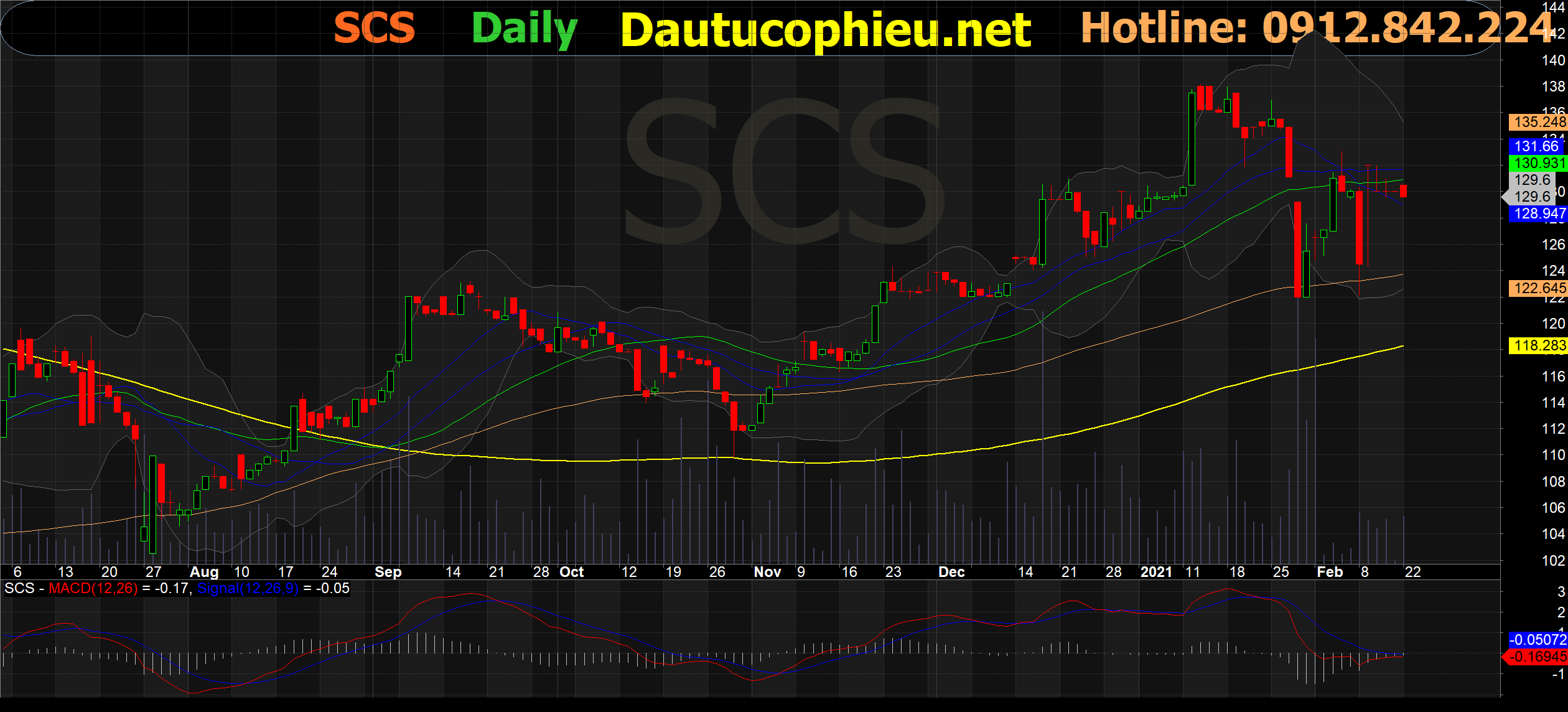 Đồ thị cổ phiếu SCS phiên giao dịch ngày 27/04/2021. Nguồn: AmiBroker