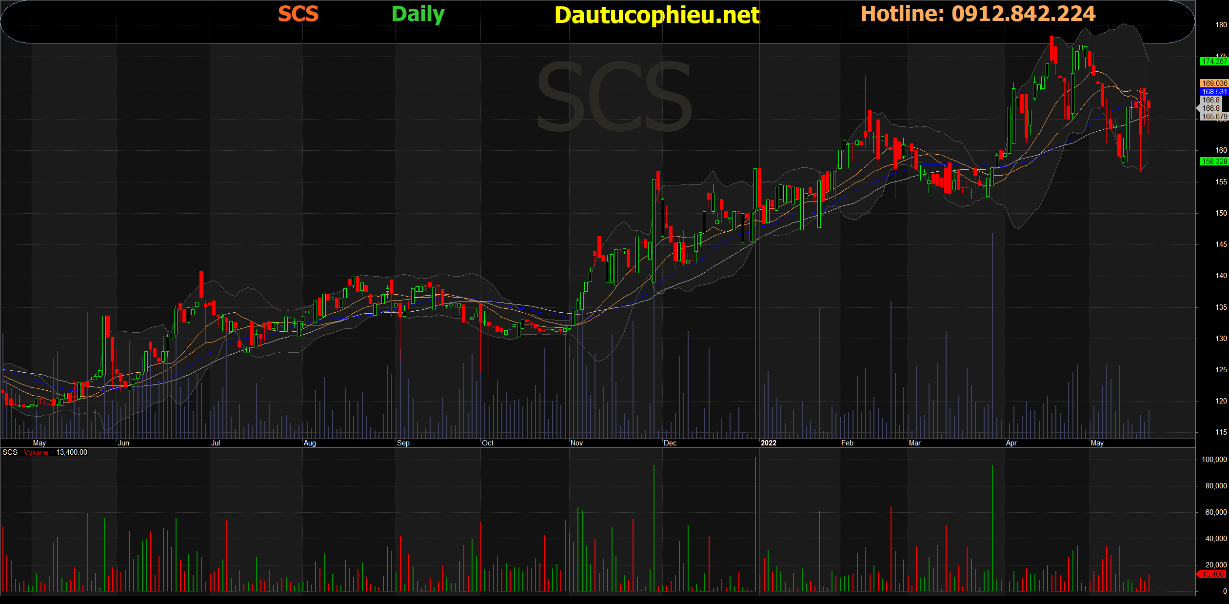 Đồ thị cổ phiếu SCS phiên giao dịch ngày 24/05/2022. Nguồn: AmiBroker