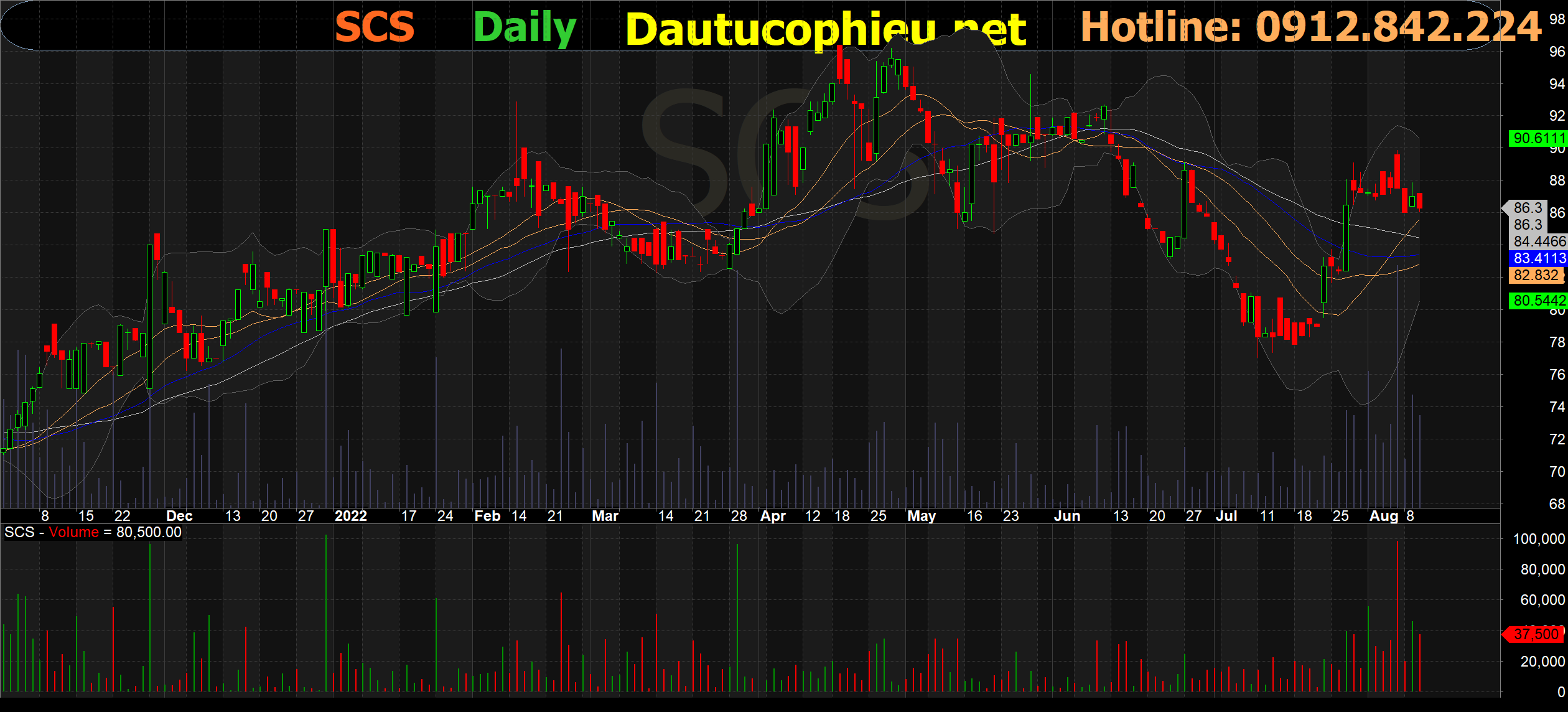 Đồ thị cổ phiếu SCS phiên giao dịch ngày 10/08/2022. Nguồn: AmiBroker