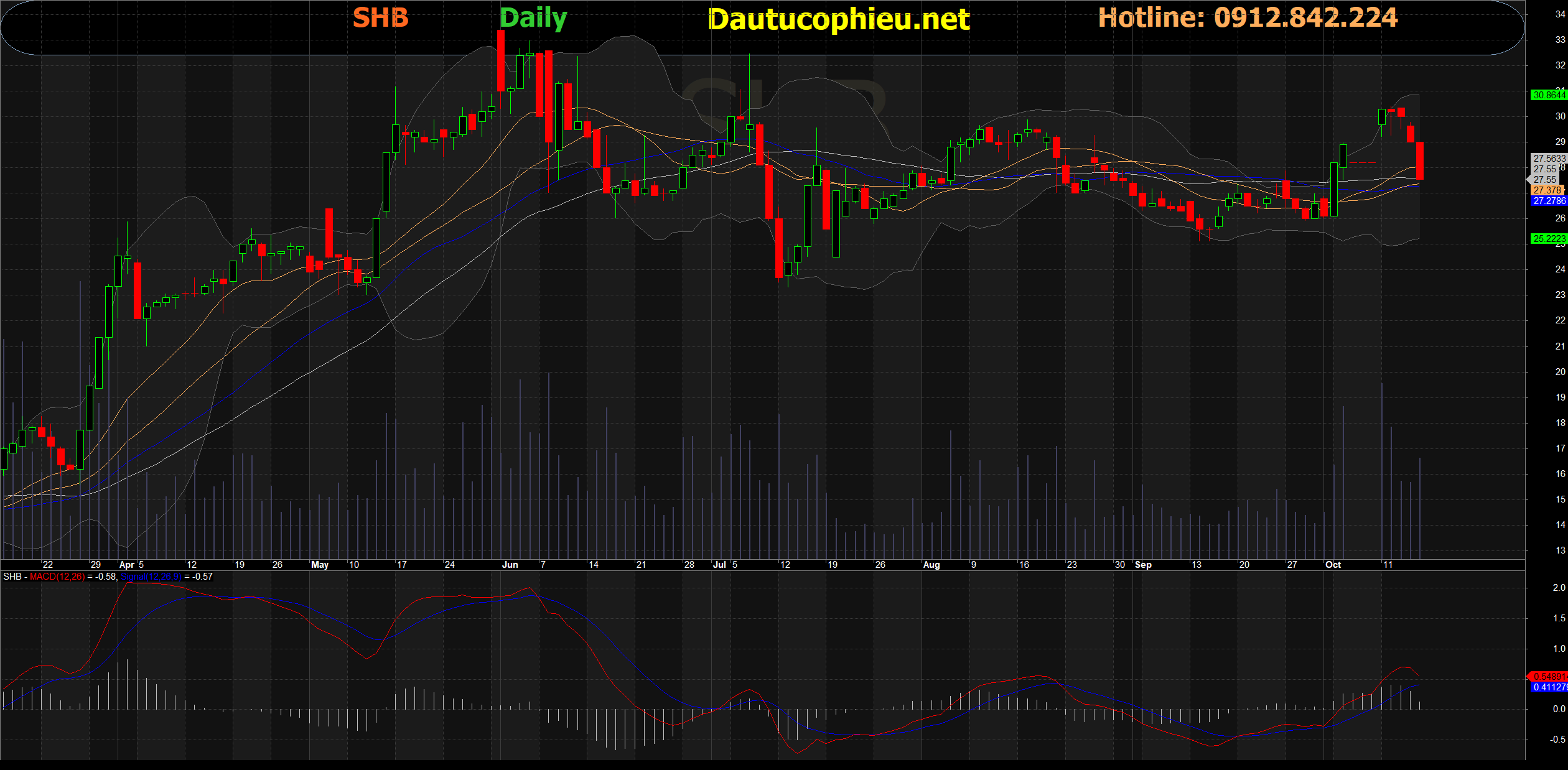 Đồ thị cổ phiếu SHB phiên giao dịch ngày 15/10/2021. Nguồn: AmiBroker