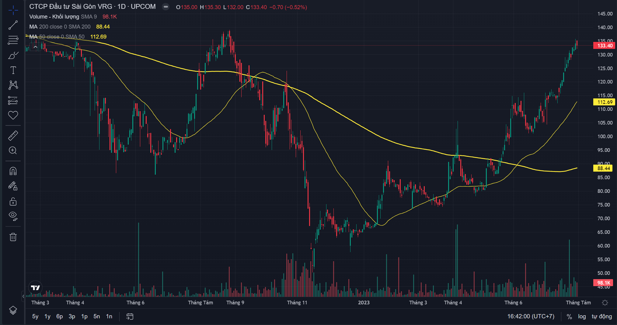 Đồ thị cổ phiếu SIP phiên giao dịch ngày 02/08/2023. Nguồn: Tradingview