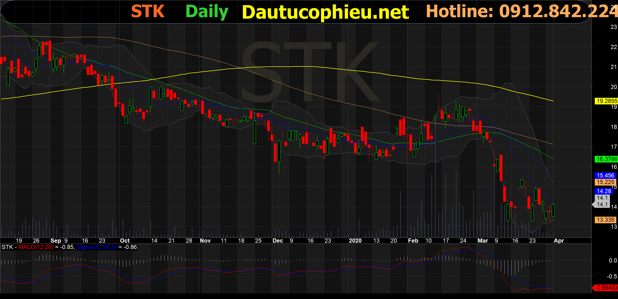 Đồ thị cổ phiếu STK phiên giao dịch ngày 01/04/2020. Nguồn: AmiBroker.